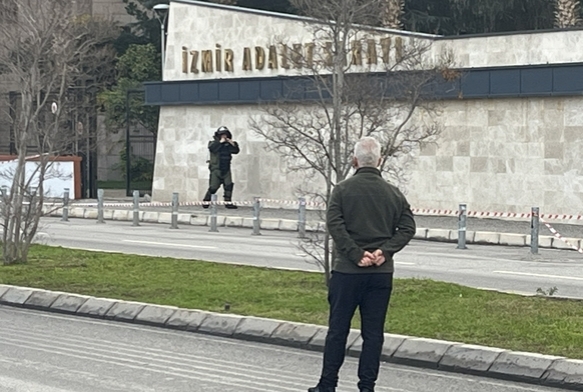 İzmir Adliyesi önünde yol kenarına bırakılmış şüpheli paket paniğe neden oldu. Emniyet görevlil