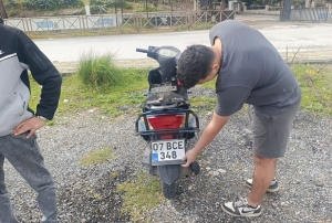Antalya'nın Manavgat ilçesinde motosikletin plakasını okunmayacak şekilde kapatan motosiklet sü