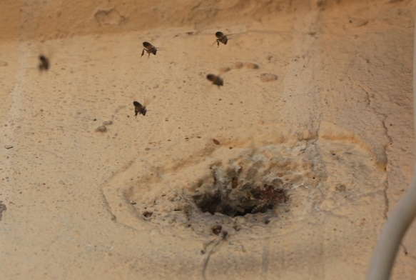 Hatay'da 2 katlı binanın giriş katındaki duvarda bulunan delikten içeri girerek yuva yapan bal