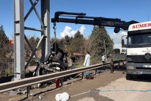 Ankara'nın Kahramankazan ilçesinde özel halk otobüsünün köprü direğine çarptığı kazada 5 kişi h