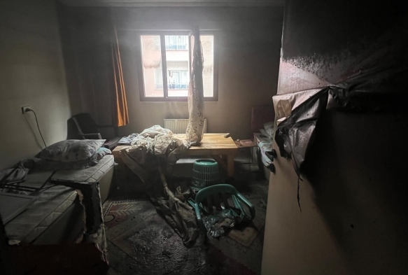 İddiaya göre B.G., daha sonra kendi dairesine girerek kapıyı kilitledi. Kısa süre sonra dairesini ateşe veren şahıs, olay yerinden kaçarak apartmandan uzaklaştı.