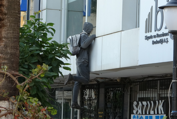 Mersin'de bir binanın penceresindeki hırsız görünümlü cansız manken, pek çok kişiyi yanıltarak kimi vatandaşları polisi aramaya, kimilerini ise pencereye taş atmaya yönlendiriyor. Gerçek olmadığı anlaşılınca ise olay tebessümle son buluyor.