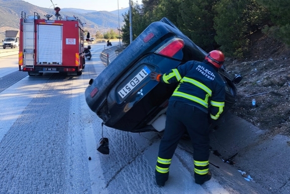 Bilecik'te seyir halinde kontrolden çıkan otomobil su kanalına devrilirken, sürücüsü yaralandı.