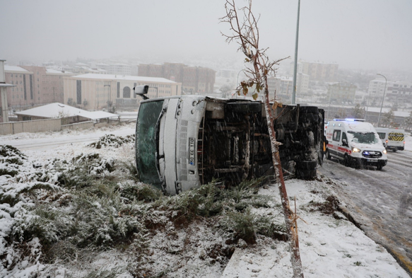 Nevşehir'de işçileri taşıyan servisin takla atması sonucu 14 kişi yaralanırken, yaralılardan bi