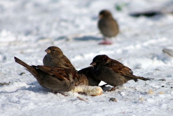 Kayseri’de yem derdine düşen kuşların imdadına vatandaşlar yetişti. Kuşlar, kar üstüne bırakılan ekmek parçalarını yemek için birbiriyle yarıştı.