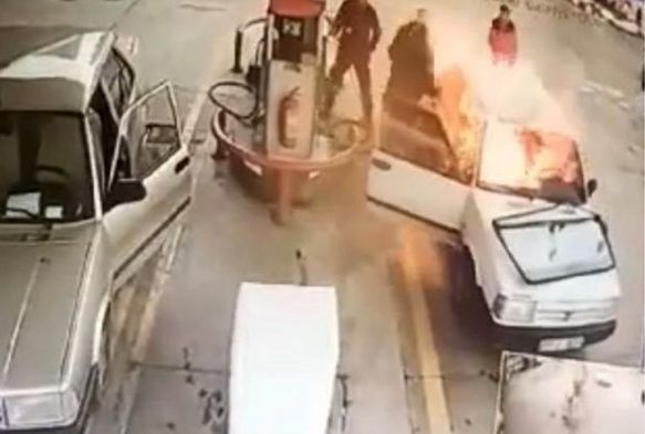Adana'da bir akaryakıt istasyonunda LPG dolumu yapılan Tofaş otomobil bomba gibi patladı. Araçta bulunan 3 kişi kendilerini dışarı atıp canını zor kurtardı.