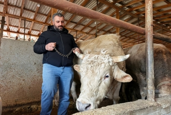Bursa'da kurbanlık hayvan satışı yapılan çiftlikteki 1 ton 100 kilo ağırlığında 'Paşa' ismi ver