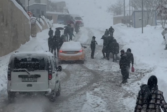 Hakkari'nin Yüksekova ilçesinde başlayan yoğun kar yağışı ve tipi nedeniyle vatandaşlar araçlarını yolda bırakarak evlerine yürüyerek gidebildi.