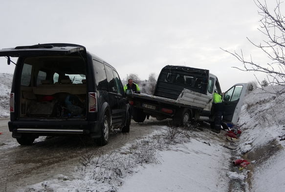 Kastamonu'da işçileri taşıyan kamyonetin kar yağışı sebebiyle kayması sonucu şarampole devrilme
