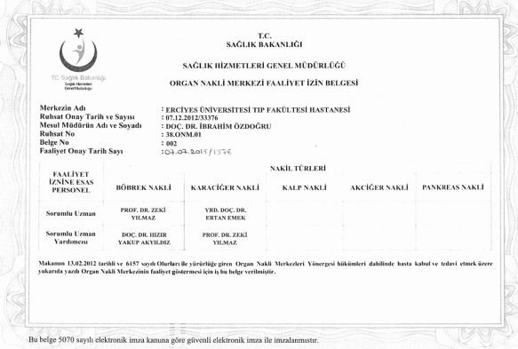 “Bazı basın yayın kuruluşlarında hastanelerimizle ilgili böbrek nakli ruhsatımızın iptal edildiği yönündeki asılsız haberlerle ilgili büyük üzüntü duymaktayız. Kayseri Tabip Odası Başkanı ve aynı zamanda üniversitemiz Tıp Fakültesi Öğretim Üyesi Prof. Dr. Hüseyin Per’in yersiz açıklamalarından oluşan bu tür haberleri hayret ve ibretle karşılamış bulunmaktayız. Erciyes Üniversitesi Tıp Fakültesi Genel Cerrahi Anabilim Dalı Öğretim Üyesi Prof. Dr. A. Zeki Yılmaz adına T.C. Sağlık Bakanlığı Sağlık Hizmetleri Genel Müdürlüğü tarafından verilen ruhsatımız geçerli olup, iptali söz konusu değildir. Sayın Per’in bu beyanı hangi amaçla ve niçin yaptığı anlaşılamamıştır. Erciyes Üniversitesi Tıp Fakültesi Hastaneleri, sadece Kayseri’nin değil, tüm çevre iller de dahil 3 milyonun üzerinde nüfusa tüm branşlarda sağlık hizmeti vermeyen çalışan üçüncü basamak sağlık kuruluşudur. Halka nasıl daha iyi sağlık hizmeti verebiliriz? Eksiklerimizi nasıl tamamlarız? Bunun kaygısında olmamız gerekirken; asılsız beyanlarla ortaya iddialar atılmakta ve bu sürekli hale getirilmektedir. Yalan beyanlarla kurumumuz yıpratılmaya çalışılmaktadır. Hastanemizle ilgili bahsi geçen haberin tamamen asılsız olduğunu kamuoyuna bildiririz.”