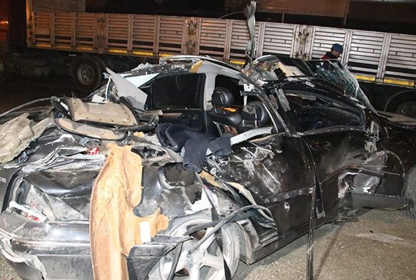 Lüks otomobil park halindeki tıra çarptı; 1 ölü 2 yaralı Aşırı hız can aldı