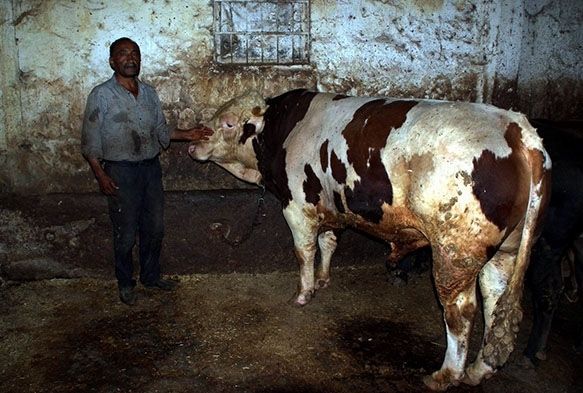 Kayseri’de besici Osman Göker’in 2 senedir Kurban Bayramı için beslediği 1 tonluk ‘Paşa’ isimli kurbanlık, 21 bin TL’den alıcısını bekliyor.
