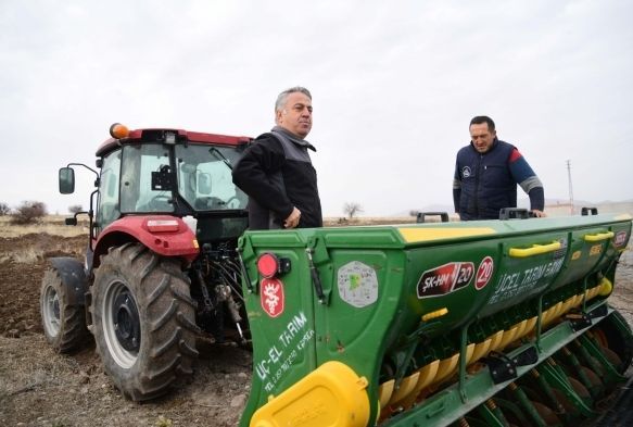 Kayseri'de atıl tarım arazilerin üretime kazandırılması, tarım alanlarının ve üretimin arttırılması, nadas alanların daraltılması ve ürün deseninin çoğaltılması amacıyla Tarım ve Orman Bakanlığı tarafından yüzde 75 hibeli 'Tohumdan Sofraya Ekmeklik Buğday' Projesi kapsamında Kocasinan ilçesinde 53 üreticiye 20 ton ekmeklik buğday tohumu dağıtıldı. İl Tarım ve Orman Müdürü Mustafa Şahin de, ilçeye bağlı Emmiler Mahallesi'nde bulunan tarım işletmesini ziyaret ederek, tohum ekimi yapan üreticiye eşlik etti.