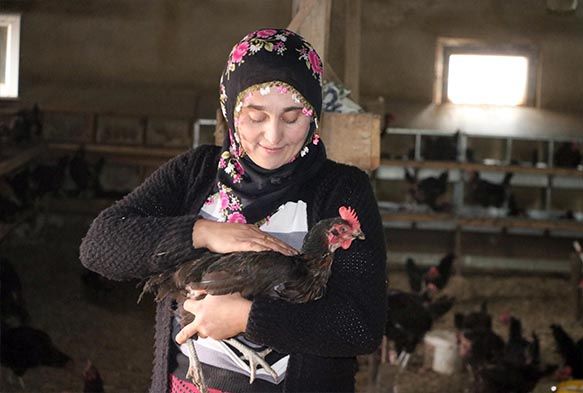 Aldığı hibe yardımıyla otomatik yemlik, suluk, aydınlatma, folluk, fan gibi makine ekipmanlarının yanı sıra kümes inşaat giderlerini de karşılayan 31 yaşındaki Esme İpeksoy, aldığı 550 adet ataks cinsi tavukla yumurta üretimine başladı.