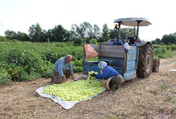 Amasya'nın Taşova ilçesinde yetiştirilen coğrafi işaret tescilli çiçek bamyasının bu yılki hasadı yüzleri güldürdü.