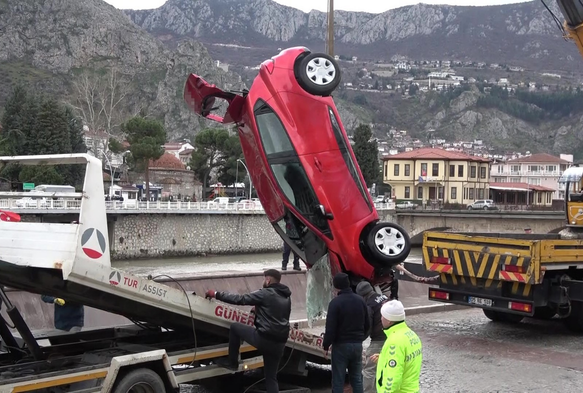Amasya'da çarpışan 2 otomobilden biri köprüden Yeşilırmak Nehri'ne uçtu. Suyun içinde sürüklenen otomobildeki anne ile kızını itfaiye ekipleri kurtardı.