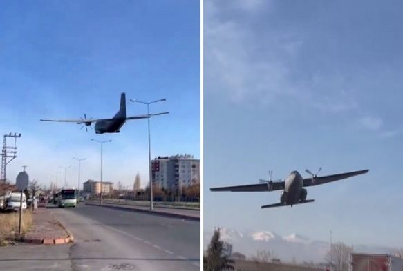 Kayseri'de eğitim uçuşu sırasında arızalanan askeri uçak acil iniş gerçekleştirdi. Alçak uçuşu gören vatandaşlar ise o anları kaydetti