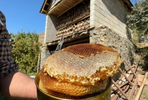 Hakkari'nin zorlu ve yüksek rakımlı coğrafyası arıcılık yapan çiftçiler, 6 aylık çalışmanın ardından geleneksel "sepet kovan" balının hasadına başladı.