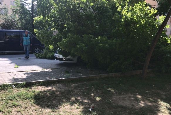 Gürültü sonrasında sokağa çıkan vatandaşlar gördükleri manzara karşısında şaşkınlık yaşarken, belediye ekipleri aracın üzerindeki dalları keserek kaldırdı. Yetkililer olayla ilgili olarak işlem başlatıldığını bildirdi.