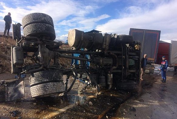 Edinilen bilgiye göre Kayseri-Pınarbaşı yolunda meydana gelen trafik kazasında 47 PJ 998 plakalı tır, sürücüsünün direksiyon hakimiyetini kaybetmesi sonucunda yan yattı. Meydana gelen kaza nedeniyle Kayseri-Pınarbaşı yolu bir süre trafiğe kapatılırken, yaralı sürücü 112 ekipleri tarafından Bünyan Devlet Hastanesi'ne kaldırıldı.