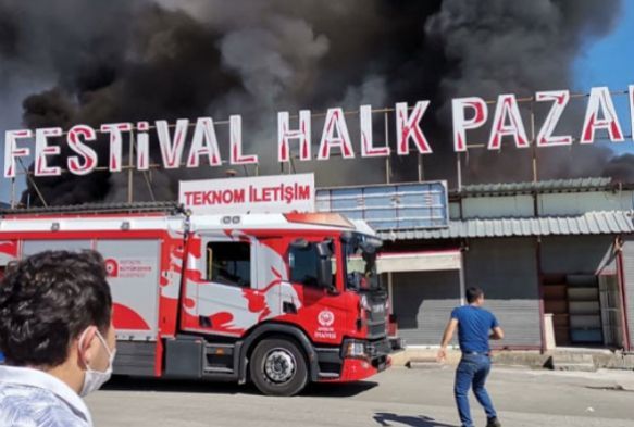 Antalya'da Aspendos Bulvarı'ndaki Festival Çarşısı'nda yangın çıktı. Yangına itfaiye ekipleri müdahale ediyor. Çarşıda 2017 yılında da yangın çıkmış, 150 iş yeri kullanılmaz hale gelmişti.