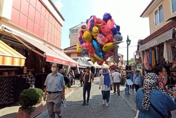 Eskişehir’de günde 10 kilometre yürüyerek balon satışı yapan Hamit Bilge, aylık ortalama 6 bin lira kazanıyor.