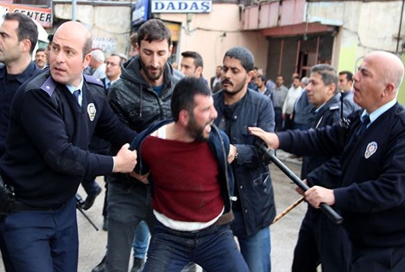 Olay yerine çok sayıda polis ekibi sevk edildi. Polis tarafları birbirinden ayırarak saldırganları etkisiz hale getirdi. Yere yatırılarak elleri kelepçelenen saldırganlar ekip otolarıyla polis merkezlerine götürüldü.