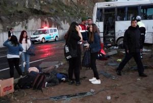 Tramvay öğrenci servisine çarptı: 6 yaralı