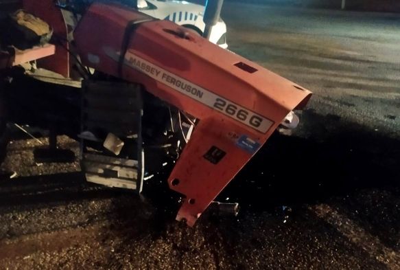Kayseri'nin Yeşilhisar ilçesinde tırla çarpışan traktör ikiye bölündü. Kazada 1 kişi yaralandı.