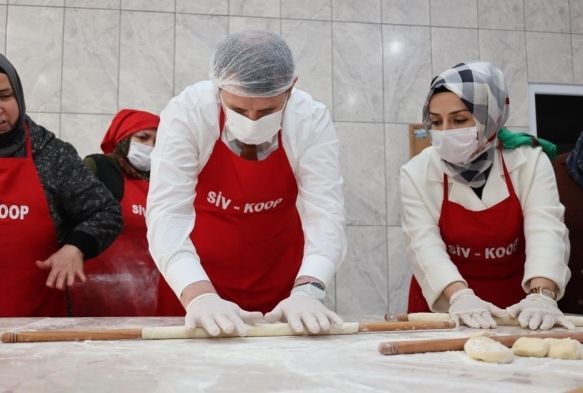 Kadın kooperatifini ziyaret eden Sivas Valisi Salih Ayhan, eline aldığı oklava ile eşiyle birlikte karşılıklı yufka açtı.