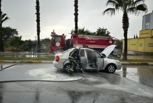 Antalya'nın Manavgat ilçesinde seyir halindeyken yanmaya başlayan otomobilin sürücüsü yaralanır