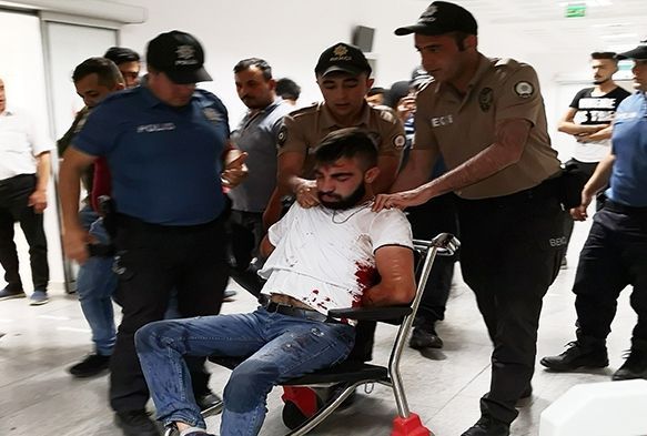 Aksaray’da alkol aldıktan sonra yolda giden polis memuruna yumruk atan şahıs daha sonra kendini bıçakla kesti.