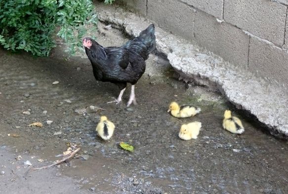 Osmaniye’de kuluçkaya yatan tavuk, yumurtadan çıkan ördek yavrularına annelik yapıyor. İçgüdüsel olarak yüzen ördekleri gören anne tavuğun yavruları suyun içerisinden çıkarmaya çalışması tebessüm ettirdi.