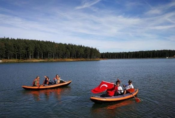 Bolu’nun doğal güzellikleri ile ünlü Abant ve Düzce’nin Topuk Yaylasında Ata’ya saygı etkinliği kapsamında yamaç paraşüt ve kano yapıldı.