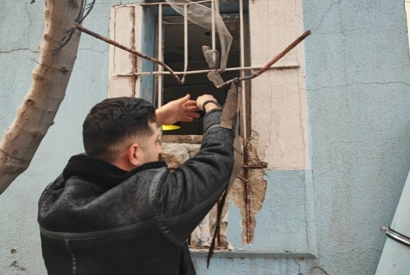 Adana’da bir telefoncuya demir şebekeyi yamultarak, küçük pencereden güçlüklü giren hırsız, bir