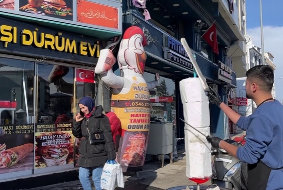 Sivas'ın Suşehri ilçesinde bir döner ustası, etkili olan kar yağışını farklı bir şekilde değerl
