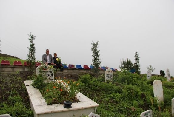 Trabzon'un Çarşıbaşı ilçesindeki Pınarlı mahallesinde bulunan mezarlıkta vatandaşların rahat bir şekilde dualarını okuyabilmesi için çoğunlukla bordo ve mavi renklerden oluşan tribün koltukları yerleştirildi.