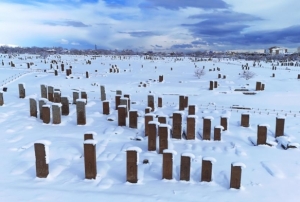 Bitlis'in Ahlat ilçesinde etkili olan kar yağışı sonrası tarihi mekânlar beyaza büründü, ortay