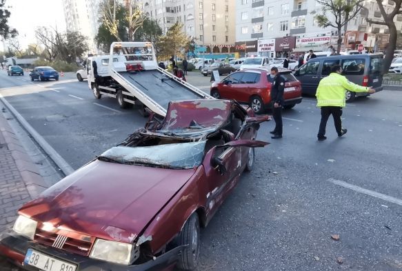 Edinilen bilgiye göre ilçeye bağlı Mustafa Kemal Paşa Caddesi üzerinde Cemal Y.'nin sürücüsü olduğu 38 AT 810 plakalı Fiat Tempra marka otomobil, iddiaya göre sürücüsünün önündeki araca çarpmamak için manevra yapması sonucu direksiyon hakimiyetini kaybederek refüje çıktı. Otomobilin takla atmasıyla meydana gelen kazanın ardından polis, itfaiye ve sağlık ekibi sevk edilirken, ekipler karton gibi ezilen otomobildeki sürücü Cemal Y.'yi sıkıştığı yerden çıkardı. Ambulansla hastaneye kaldırılan Cemal Y.'nin hayati tehlikesinin bulunduğu öğrenildi. Polis ekiplerinin incelemesinin ardından otomobil, çekici ile bulunduğu yerden kaldırıldı.