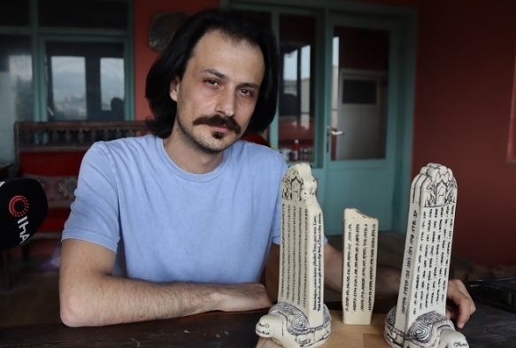 Kayseri’de yaptığı birbirinden güzel eserlerle tarihseverlerin ilgisini çeken heykeltıraş Mahmut Esat Sevilay, özellikle Türk tarihi için önemli olan ve günümüze kadar ulaşan eserlerin birebir maketini yapıyor. İçerisinde ilk 'Türk' kelimesinin geçtiği Orhun Abideleri, Hoca Ahmet Yesevi Türbesi ve ülkenin farklı yerlerinde bulunan tarihi kümbetlerin maketlerini yapan Sevilay, maketleri tek tek eliyle işliyor.