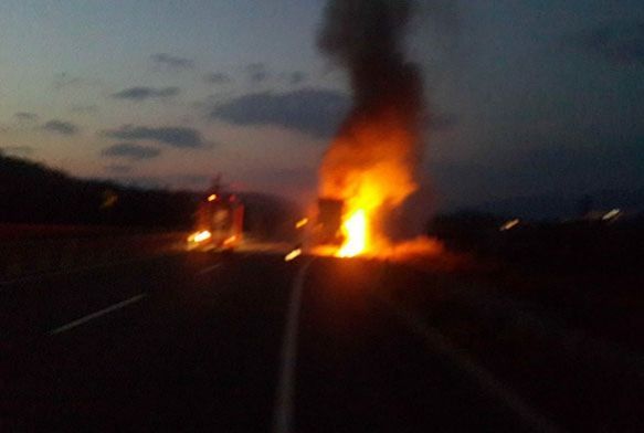 Sakarya istikametinden Eskişehir istikametine seyir halinde olan Ziya Yuvarlak yönetimindeki 06 GE 2315 Plakalı TIR, Bilecik’in Osmaneli ilçesi Büyükyenice köy kavşağında alev aldı. Aracı yolun sağına çekip, yangın tüpüyle alevlere müdahale eden Yuvarlak, söndürmeyi başaramayınca itfaiyeye haber verdi. Kısa sürede TIR'ın dorsesini saran alevleri, Olay yerine sevk edilen Osmaneli Belediyesi itfaiye ekipleri, yaklaşık yarım saatlik çalışmanın ardından TIR'ın dorsesini söndürdü. Yangın nedeniyle trafiğe kapanan karayolu, alevlerin söndürülmesiyle yeniden ulaşıma açıldı.