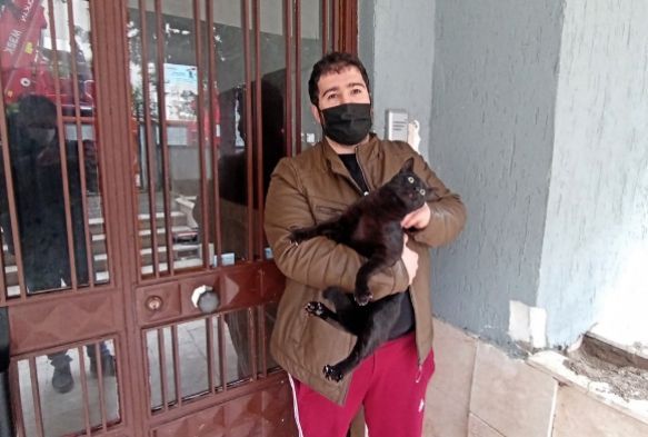 Bursa'da sahiplerinin beşinci katta baktığı kedi, balkondan dördüncü kata düştü. Kedisi itfaiyenin operasyonuyla kurtarılan kadın sevinç göz yaşları döktü.