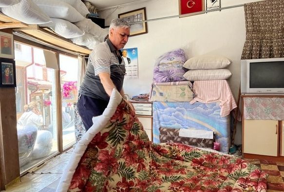 Yün yorganın yapımıyla ilgili bazı detaylara da değinen Sülükoğlu, bir yorgan dikmek için tüm gün uğraşıldığını söyledi. Vatandaşların ise tüm bu çabaya rağmen fiyatları fazla gördüğünü aktaran yorgancı Murat Sülükoğlu, “Yorganı ilk önce çatıyoruz, ondan sonra tarıyoruz. Ya da bayanlar elle dürüp buraya getiriyorlar. Öyle döşüyoruz, dikiyoruz. Dikme bir insanın aşağı yukarı bir gününü alıyor. Fiyat söylediğimiz zaman büyük para zannediyorlar. Yani 250-300 liraya yorgan dikiyorsun, onu çok görüyorlar. Yorganlarımızı koyun yününden yapıyoruz. Öyle tiftikten falan yorgan olmaz. Eskiden pamuktan yapılıyordu. Mesela sahil kenarlarında ve sıcak memleketlerde çoğu insan pamuk yorgan tercih ediyor çünkü serin tutuyor. Ama bizim buralarda daha çok kış olduğu için pamuk yorgan pek kullanılmıyor. Vatandaşlara yünde yatmalarını tavsiye ederim. Yatakları zaten naylon, sağlık bakımından iyi bir tercih değil. Ama yün daha sağlıklı, daha sıhhatlidir. İnsan cereyanını ve stresini alır” şeklinde konuştu.