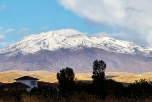 Bitlis’in Adilcevaz ilçesinde bulunan 4058 metre yüksekliğindeki Süphan Dağı, yağan karla beyaz