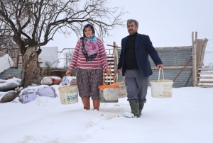 Elazığ'da besiciler dondurucu soğuklarda zorlu bir mesai yürütüyor.